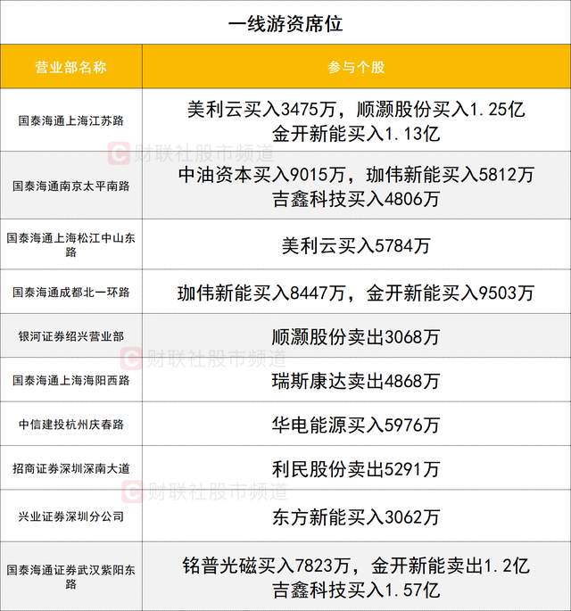 一线游资活跃度一般,中油资本获一家一线游资(国泰海通证券南京太平南路)买入0.9亿。