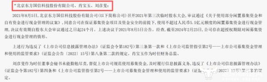 值得关注的是,刘彦斐的履职过程中曾出现监管合规相关记录。2024年8月,东方国信发布公告,披露公司收到深交所监管函与北京证监局警示函。警示函明确,公司存在超授权期限使用闲置募集资金进行现金管理的情形,违反了募集资金管理相关规定。刘彦斐作为时任董事会秘书,被认定未勤勉尽责、未能有效督促公司规范募集资金使用,需与时任财务总监肖宝玉共同承担主要责任。