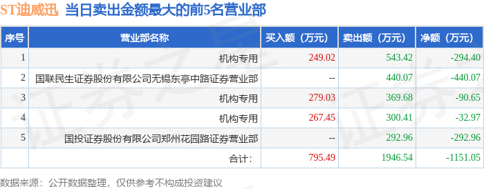 10月15日ST迪威迅(300167)龙虎榜数据:机构净卖出267.16万元