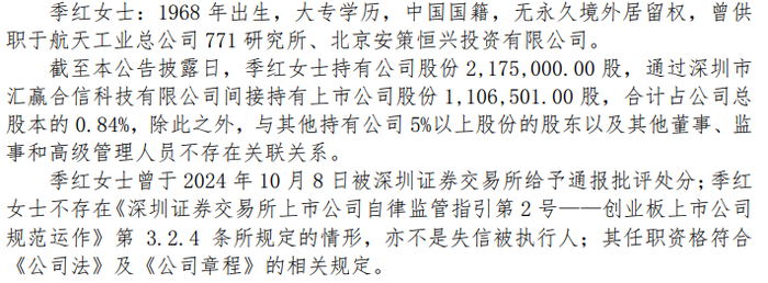 ST迪威迅选举季红为职工代表董事 此前曾被深交所通报批评
