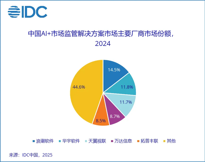 2025 年 10 月 22 日,IDC 发布的《中国AI+市场监管解决方案市场份额,2024:从“事后处置”向“事前预防”转型》报告显示:2024 年中国 AI + 市场监管解决方案市场整体规模达 11.2 亿元人民币。