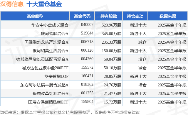根据2025基金半年报公募基金重仓股数据,重仓该股的公募基金共21家,其中持有数量最多的公募基金为华安基金的华安中小盘成长混合。华安中小盘成长混合目前规模为18.5亿元,最新净值3.279(10月9日),较上一交易日上涨3.79%,近一年上涨14.77%。该公募基金现任基金经理为金拓。金拓在任的基金产品包括:华安智增精选混合,管理时间为2023年10月23日至今,期间收益率为20.89%;华安景气回报混合发起式A,管理时间为2024年9月19日至今,期间收益率为22.83%;