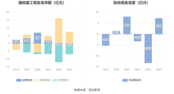进一步统计发现,2023年公司自由现金流为7.33亿元,上年同期为-13.19亿元。