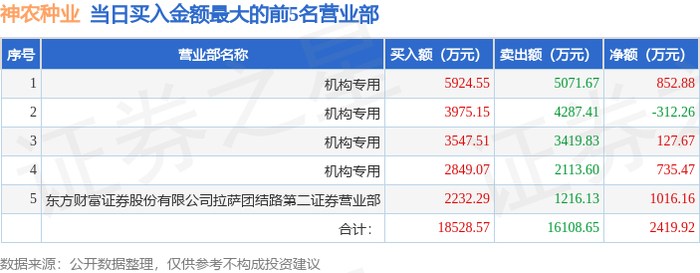 11月21日神农种业(300189)龙虎榜数据:机构净买入1403.76万元