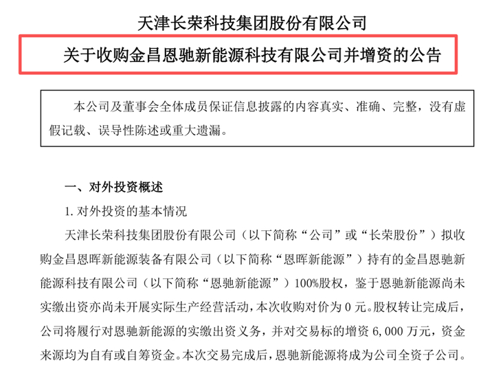 根据公告,长荣股份计划以0元对价,收购恩晖新能源持有的恩驰新能源100%股权。公告指出,恩驰新能源尚未履行注册资本实缴义务,也未开展实际生产经营活动。
