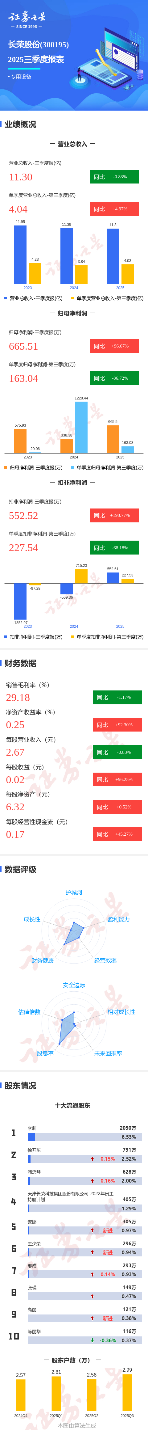 图解长荣股份三季报:第三季度单季净利润同比下降86.73%