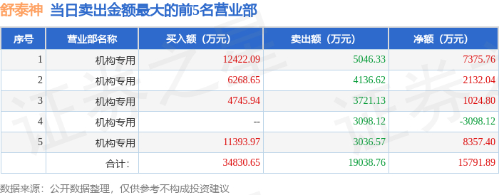 10月31日舒泰神(300204)龙虎榜数据:机构净买入1.98亿元