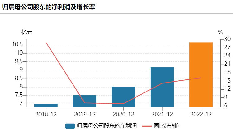 2019年至2022年,公司营收分别为252.41亿元、297亿元、373.59亿元、521.62亿元,归母净利润分别为7.51亿元、8.02亿元、9.16亿元、10.64亿元,呈增长趋势。