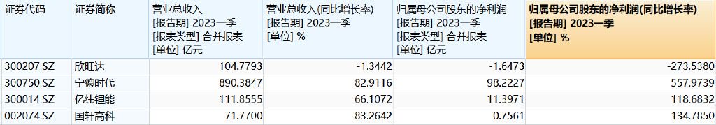 但在2023年一季度出现拐点,欣旺达营收104.8亿元,同比下降1.34%;净利润亏损1.65亿元,去年同期盈利9492万元。