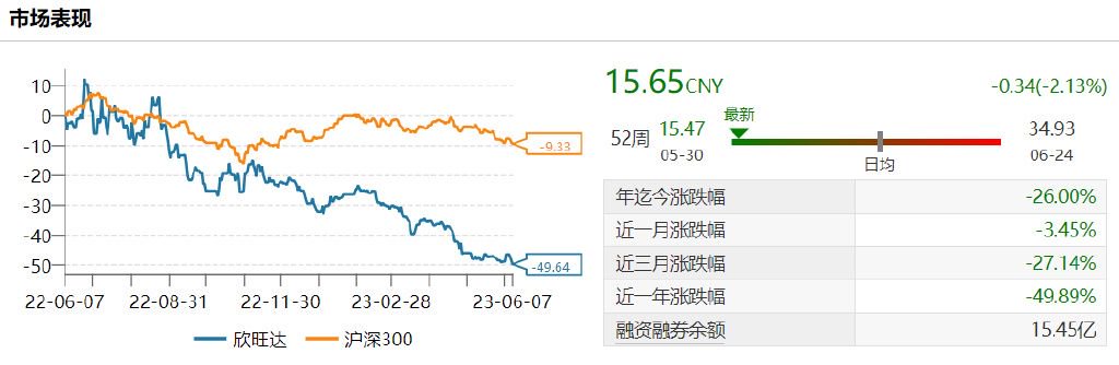 如今,主营业务放缓加上动力电池常年亏损,业务两头受挫的欣旺达股价表现一蹶不振,今年以来股价徘徊在15元/股上下,相比此前高点跌约70%,总市值蒸发700亿元左右。