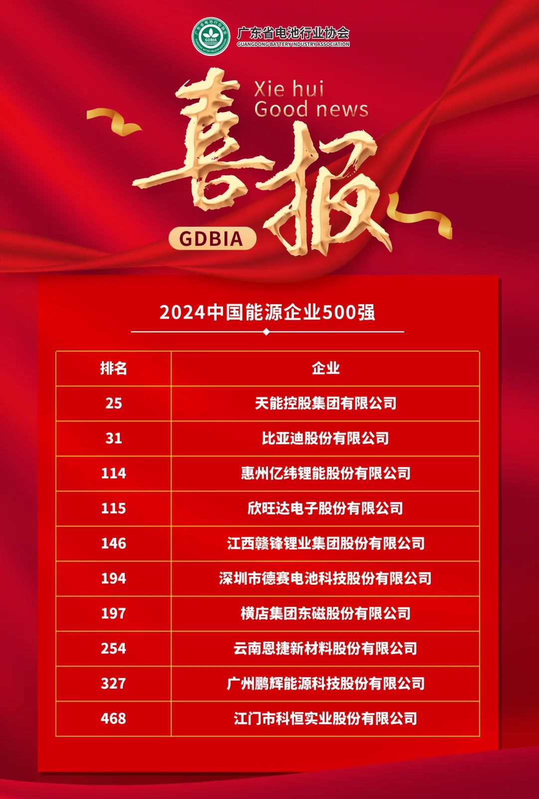上榜“2024年中国能源企业500强”的部分广东省电池行业协会会员单位: