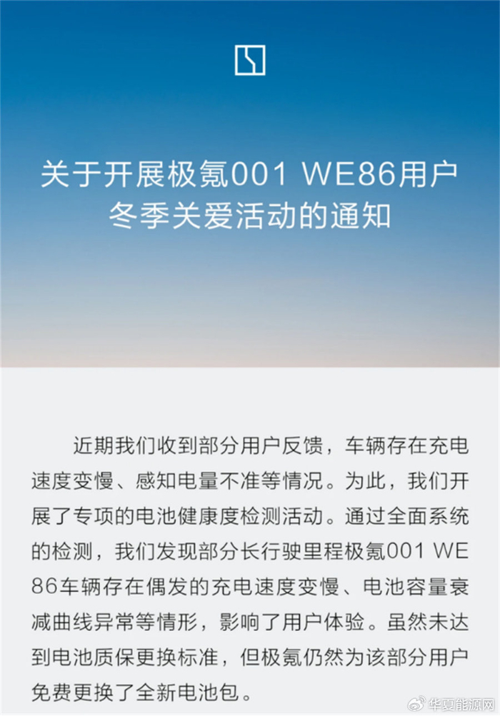 然而,2024年12月,极氪的电池问题开始爆发,因为电池充电变慢、电池衰减异常遭到大量用户投诉,极氪不得不在12月针对极氪001 WE 86车型发起“冬季关爱活动”,为出现异常问题的用户免费更换电池包。据测算,涉案车辆大约为4到5万辆,单车综合成本在5至6万元,极氪为更换电池付出了20至24亿元的费用。