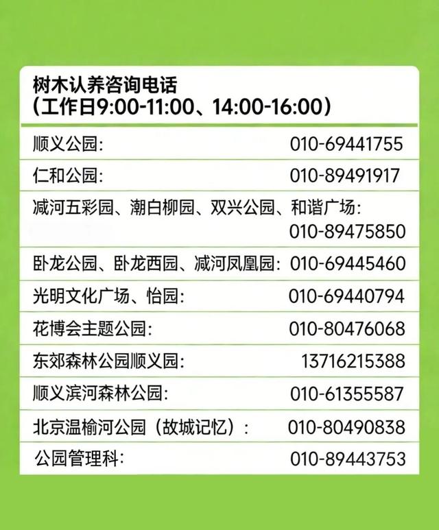 认养范围:顺义区属公园内的树木