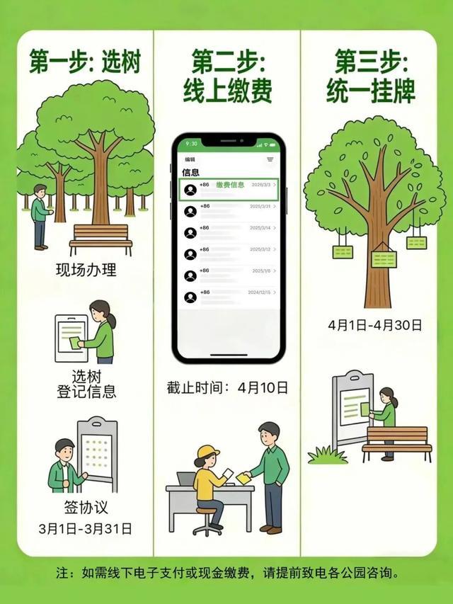 本次树木认养活动面向社会开放。3月1日至3月31日,市民可在全区15家区属公园内选择树木进行认养。认养成功后,公园将统一制作并悬挂专属认养标识牌,让每一棵树都有属于自己的“守护者”。认养资金由中心统一收取并全额上缴区财政,实行“收支两条线”管理。