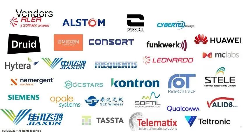 本次互通性测试由欧洲电信标准化协会(ETSI)主办,欧盟(EU)、欧洲自由贸易联盟(EFTA)、关键通信协会(TCCA)和国际铁路联盟(UIC)协办,是FRMCS技术迈向规模化部署前的关键验证环节,旨在验证不同厂商设备在FRMCS标准下的互联互通能力,为全面替代传统GSM-R系统奠定基础,共吸引了来自全球45家顶尖铁路运营商、设备制造商及行业机构的超过105名国际专家参与。