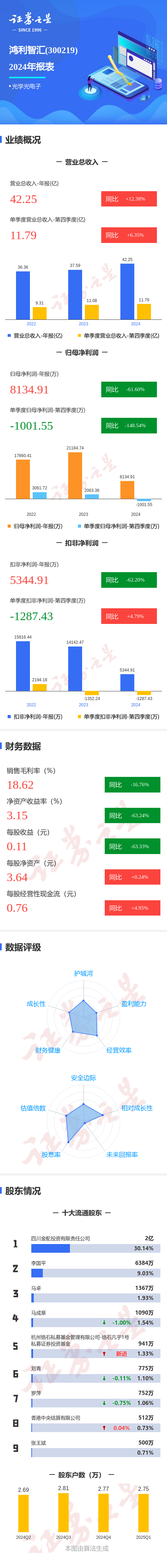 图解鸿利智汇年报:第四季度单季净利润同比减148.54%
