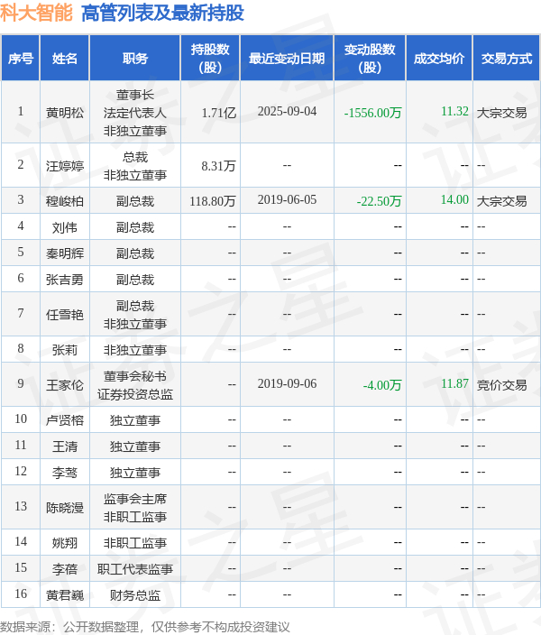 科大智能近半年内的董监高及核心技术人员增减持详情如下: