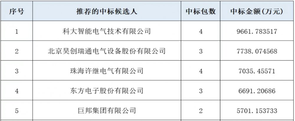 科大智能中标国网华东采购近亿元 位列候选人名单榜首