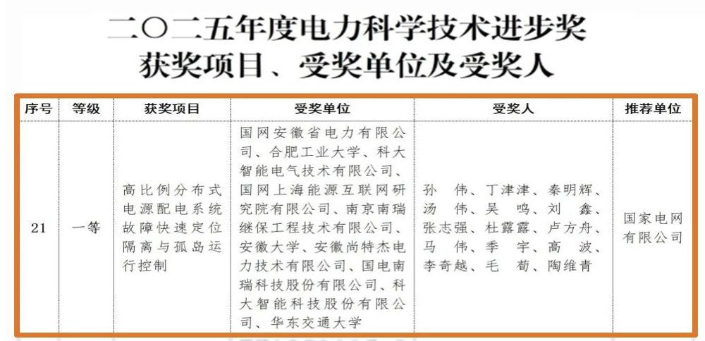 与此同时,公司在关键技术领域的研发实力亦于近期获得了权威认可。今年10月,由科大智能作为主要完成单位,协同国网安徽省电力有限公司、合肥工业大学完成的《高比例分布式电源配电系统故障快速定位隔离与孤岛运行控制》项目,荣获2025年度中国电机工程学会电力科学技术进步奖一等奖。该奖项的获得彰显了科大智能在智能配电网核心技术上的领先地位,同时成为其“产学研用”协同创新模式成功的有力证明。