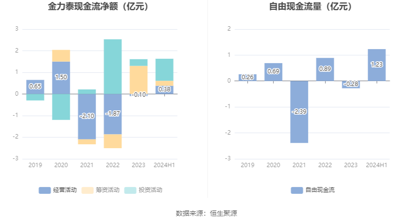 进一步统计发现,2024年上半年公司自由现金流为1.23亿元,上年同期为-0.97亿元。