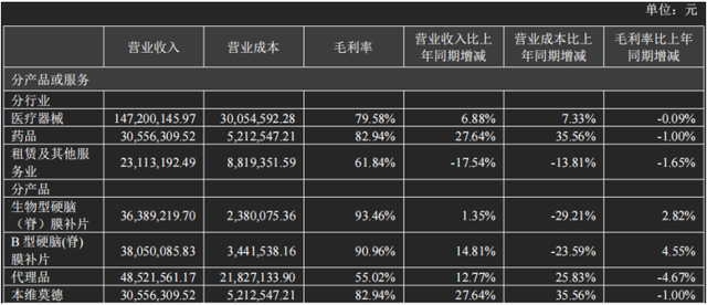 而无菌生物护创膜、乳房补片等产品收入规模较小均不足2000万元,且增速波动较大,并不能有效分担硬脑膜补片的增长压力。