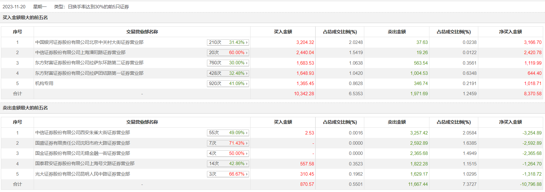 具体来看,机构买入1365.45万元,卖出346.74万元,合计净买入1018.71万元。此外,知名游资现身龙虎榜,中国银河证券北京中关村大街证券营业部、孙哥(中信证券上海溧阳路证券营业部)分别买入3204.32万元、2440.04万元;方新侠(中信证券西安朱雀大街证券营业部)、国盛证券沈阳市府大路证券营业部分别卖出3257.42万元、2592.89万元。