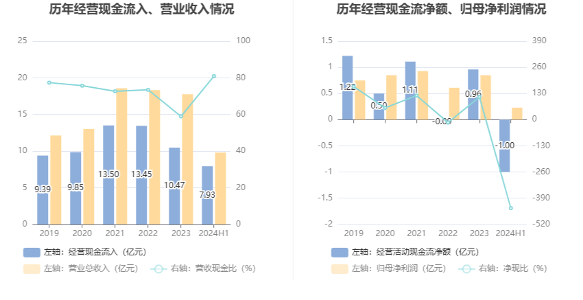 2024年上半年,公司营业收入现金比为80.94%,净现比为-439.39%。