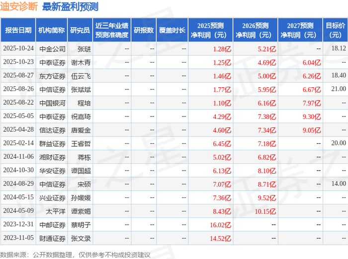中国银河证券股份有限公司程培,孟熙近期对迪安诊断进行研究并发布了研究报告《2025年三季报业绩点评:经营质量持续回升,创新业务模式深化》,给予迪安诊断买入评级。