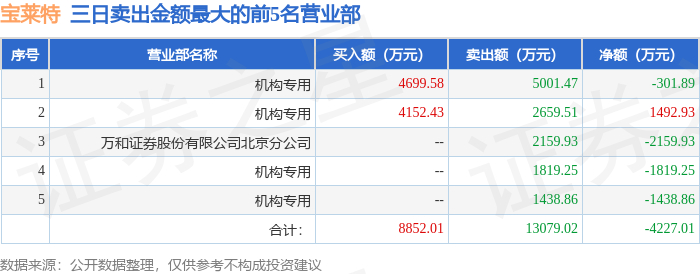 1月13日宝莱特(300246)龙虎榜数据:机构净买入1360.51万元(3日)