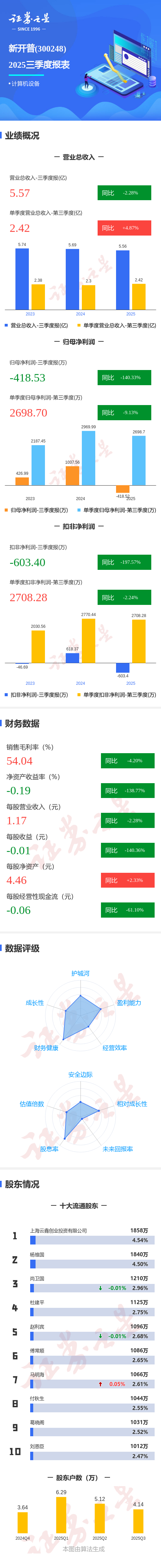 图解新开普三季报:第三季度单季净利润同比下降9.13%