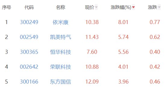 其中,依米康、凯美特气、恒华科技、荣联科技、东方国信位列板块涨幅前五位,涨幅分别为8.01%、5.74%、5.56%、4.01%、3.96%。