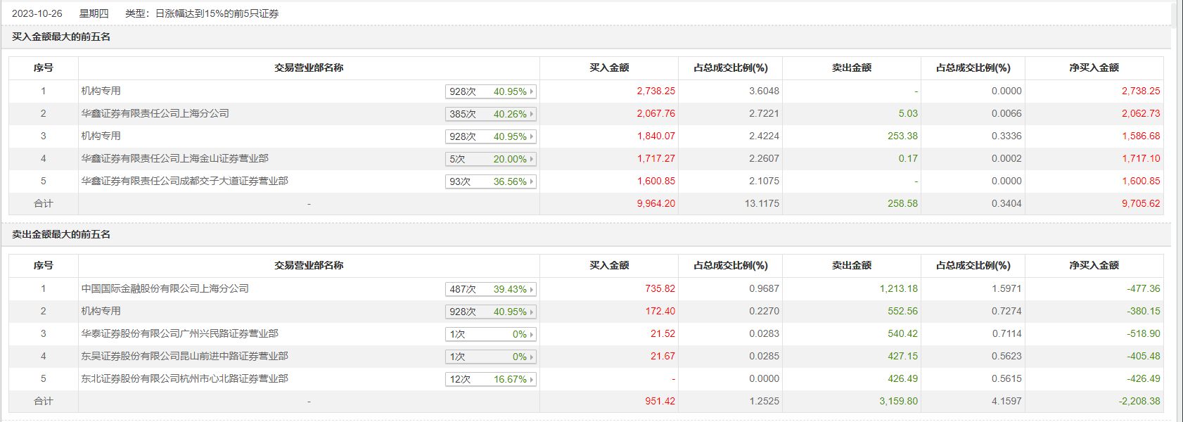 10月26日,初灵信息今日涨停,全天换手率达25.02%,振幅达19.25%。龙虎榜数据显示,营业部席位合计净买入7497.24万元。其中,机构买入4750.72万元,卖出805.94万元,合计净买入3944.78万元。此外,华鑫证券上海分公司、华鑫证券上海金山证券营业部分别买入2067.76万元、1717.27万元;中国国际金融上海分公司、华泰证券广州兴民路证券营业部分别卖出1213.18万元、540.42万元。