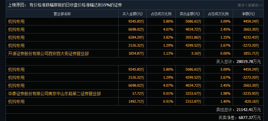 初灵信息(300250)今日20cm涨停,成交额16.47亿元,换手率35.23%,盘后龙虎榜数据显示,3家机构专用席位净买入1.14亿元,有2家机构专用席位净卖出3093.37万元。