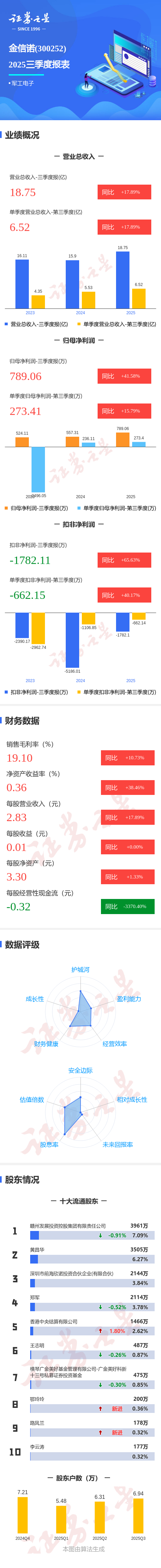 图解金信诺三季报:第三季度单季净利润同比增长15.79%