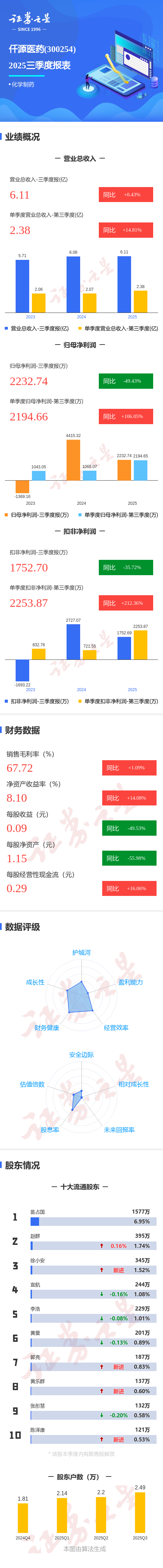 图解仟源医药三季报:第三季度单季净利润同比增长106.06%