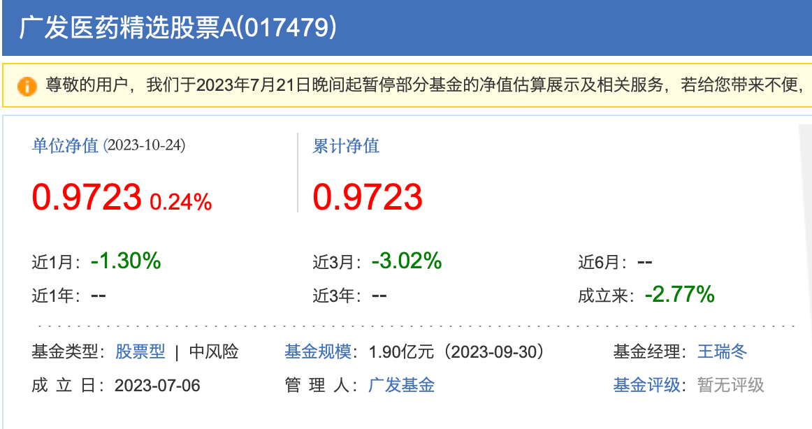 而王瑞冬在管的另一只新产品广发医药精选股票,其三季报股票仓位也只有24.35%。该产品成立于今年7月6日,最新单位净值0.9723元,成立以来亏损2.77%。