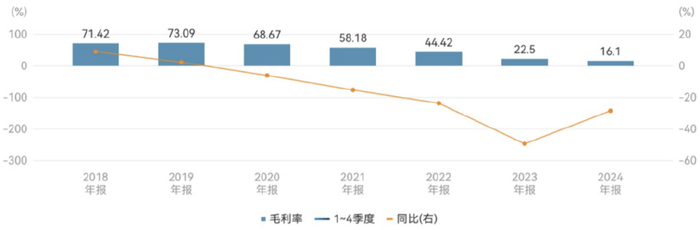 若拉长时间来看,2019年至2024年,该公司毛利率已从最高的73.09%一路下探至16.10%,年均下跌近10个百分点。2025年第二季度,常山药业的毛利率更是降至5.03%低点。