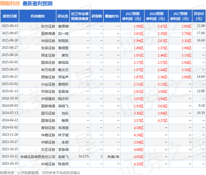 民生证券股份有限公司崔琰,马天韵近期对精锻科技进行研究并发布了研究报告《系列点评五:25Q3业绩环比改善 机器人打开第二成长曲线》,给予精锻科技买入评级。