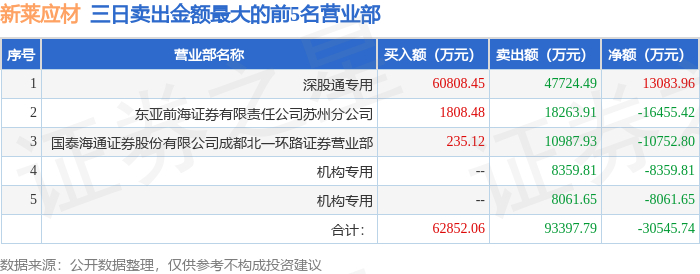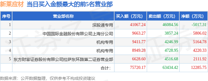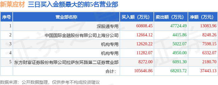 10月14日新莱应材(300260)龙虎榜数据:机构净卖出2491.25万元(3日),北向资金净买入1.31亿元(3日)