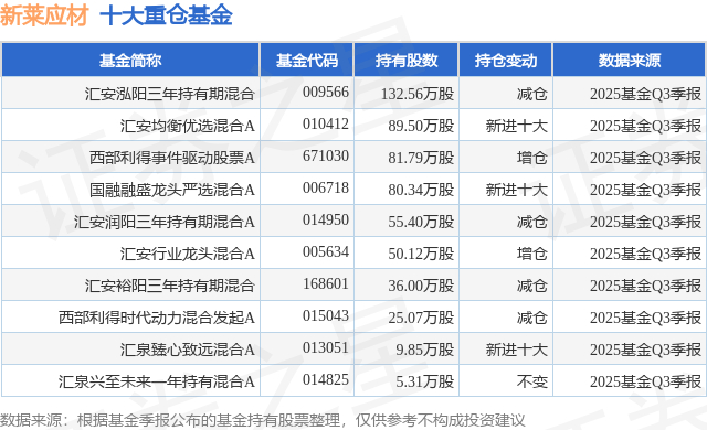 重仓新莱应材的前十大公募基金请见下表: