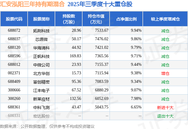 根据2025基金Q3季报公募基金重仓股数据,重仓该股的公募基金共10家,其中持有数量最多的公募基金为汇安基金的汇安泓阳三年持有期混合。汇安泓阳三年持有期混合目前规模为7.58亿元,最新净值1.3231(1月6日),较上一交易日下跌0.19%,近一年上涨51.66%。该公募基金现任基金经理为邹唯。邹唯在任的基金产品包括:汇安裕阳三年持有期混合,管理时间为2018年9月27日至今,期间收益率为127.39%;汇安行业龙头混合A,管理时间为2019年8月28日至今,期间收益率为144.44%;汇安均衡优选混合A,管理时间为2021年2月9日至今,期间收益率为11.16%。