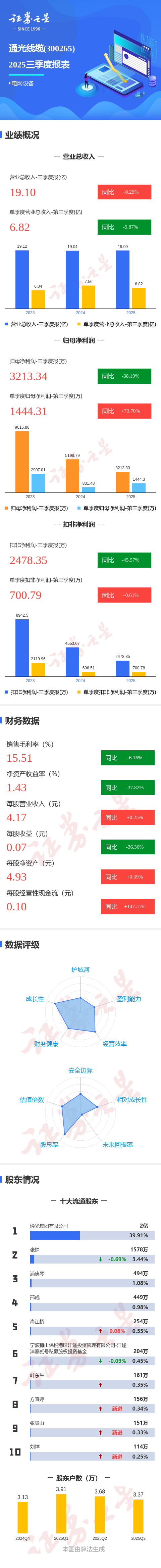 图解通光线缆三季报:第三季度单季净利润同比增长73.70%