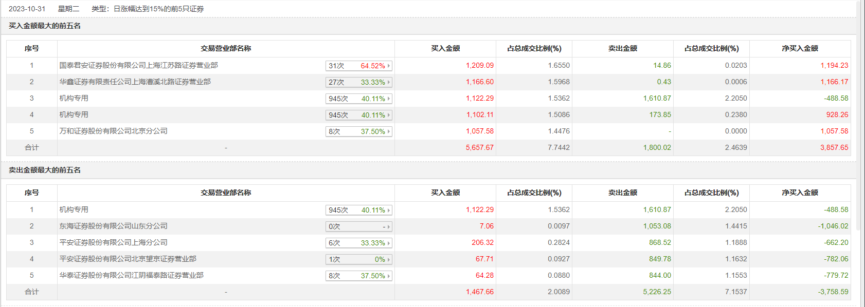 10月31日,联建光电今日涨停,全天换手率达30.05%,振幅达20.3%。龙虎榜数据显示,营业部席位合计净买入587.65万元。其中,机构买入2224.4万元,卖出1784.73万元,合计净买入439.67万元。此外,章盟主(国泰君安证券上海江苏路证券营业部)、华鑫证券上海漕溪北路证券营业部分别买入1209.09万元、1166.60万元;东海证券山东分公司、平安证券上海分公司分别卖出1053.08万元、868.52万元。