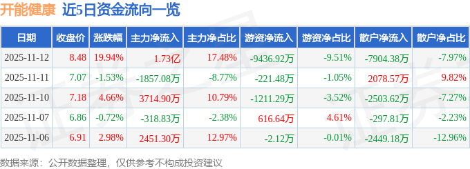 11月12日的资金流向数据方面,主力资金净流入1.73亿元,占总成交额17.48%,游资资金净流出9436.92万元,占总成交额9.51%,散户资金净流出7904.38万元,占总成交额7.97%。