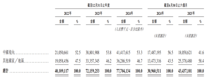 多年深耕的海外市场,收入占比显著提升。2025年上半年,公司海外收入达253.78亿元,占整体收入的58.4%,首次超过了中国市场营收。