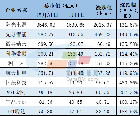 统计范围109家光伏上市企业中,有79家企业年末市值相较年初出现增长。其中有10家企业市值增幅超过100%,国晟科技以480.86%的增幅成为市值涨幅最大的光伏企业。据行业统计,该公司在11月份获得了11个涨停板,被称为光伏“妖股”。