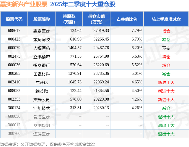 根据2025基金半年报公募基金重仓股数据,重仓该股的公募基金共9家,其中持有数量最多的公募基金为嘉实基金的嘉实新兴产业股票。嘉实新兴产业股票目前规模为47.5亿元,最新净值3.853(9月30日),较上一交易日上涨0.29%,近一年上涨19.32%。该公募基金现任基金经理为归凯。归凯在任的基金产品包括:嘉实泰和混合,管理时间为2016年3月10日至今,期间收益率为116.13%;嘉实增长混合,管理时间为2018年12月4日至今,期间收益率为100.79%;嘉实瑞和两年持有期混合,管理时间为2020年4月9日至今,期间收益率为7.35%。