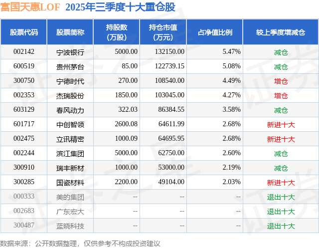 根据2025基金Q3季报公募基金重仓股数据,重仓该股的公募基金共19家,其中持有数量最多的公募基金为富国基金的富国天惠LOF。富国天惠LOF目前规模为226.61亿元,最新净值3.039(1月9日),较上一交易日上涨1.67%,近一年上涨28.04%。该公募基金现任基金经理为朱少醒。
