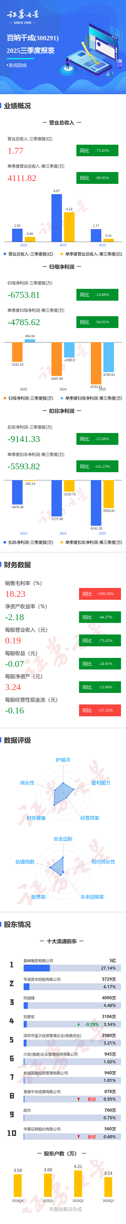图解百纳千成三季报:第三季度单季净利润同比下降94.92%