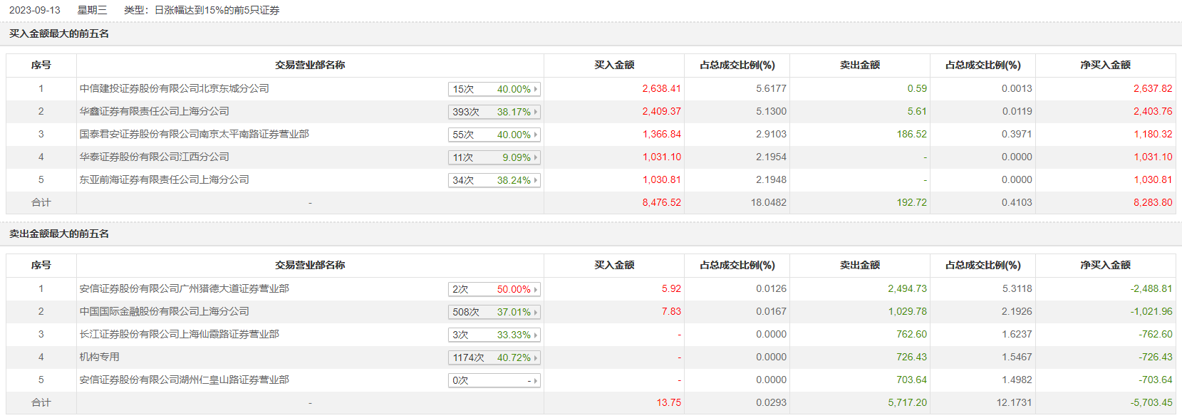 9月13日,海峡创新今日涨停,龙虎榜数据显示,上榜营业部席位全天成交1.44亿元,占当日总成交金额比例为30.66%。其中,买入金额为8490.27万元,卖出金额为5909.91万元,合计净买入2580.35万元。